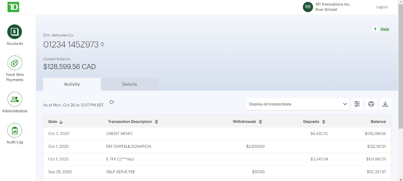 - Offering convenient online access to CAD and USD deposit account bank statements.