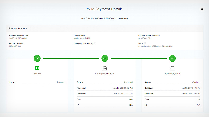 - Track your wire payment from initiation at TD to the date and time it is credited to the beneficiary.