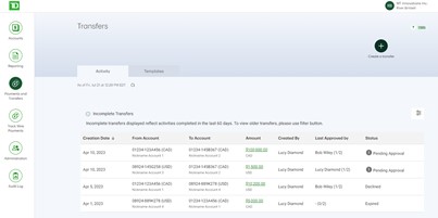 - Customizable credit/debit descriptions (up to 20 characters) and transfer templates (up to a maximum of 25) simplify transfer creation and reconciliation, encouraging consistency with repeat transfers.
