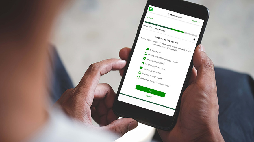 Looking for tailored advice ASAP? Simply answer a few questions and TD Mortgage Direct will quickly match you with a Mortgage Specialist.