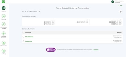 Accédez facilement aux soldes/renseignements sur les opérations pour vos CDC TD, cartes de crédit Affaires et prêts à terme et d’exploitation admissibles :